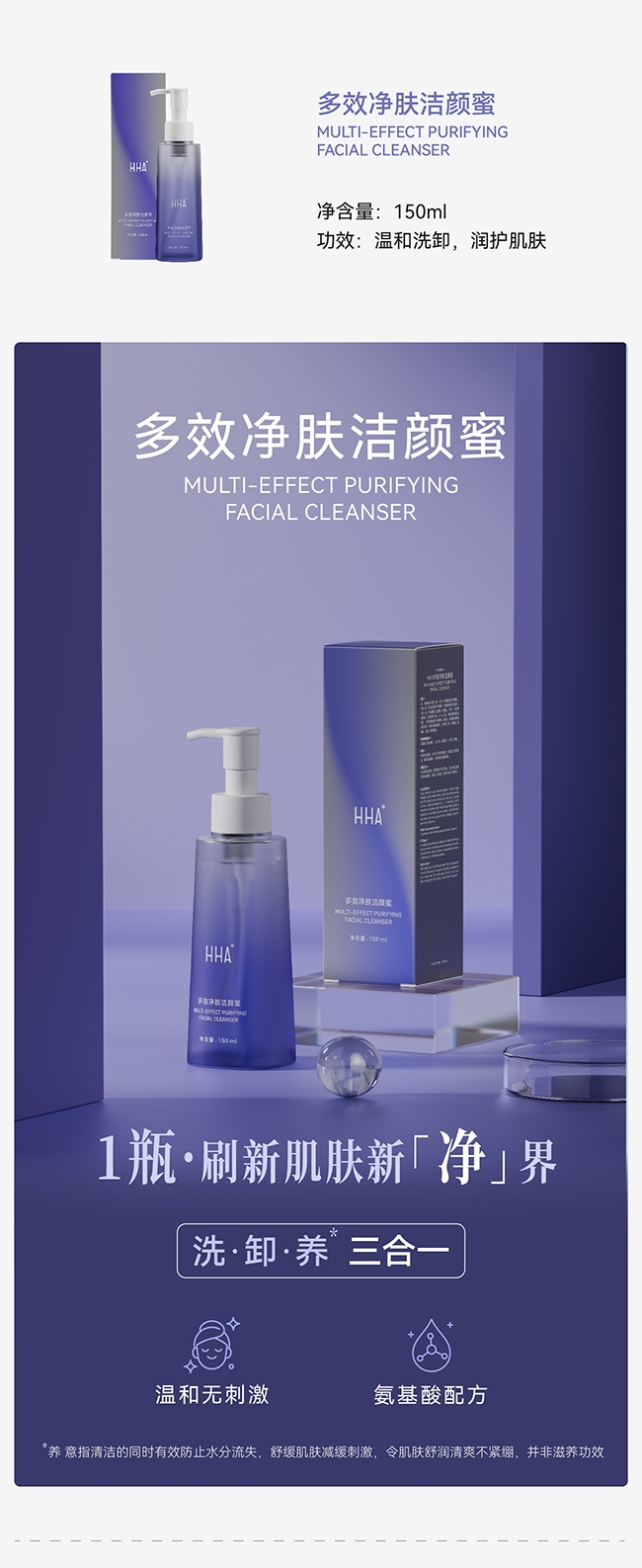 HHA 多效护肤系列,一瓶多效,洗卸抗皱一步到位,养出紧致透亮肌。